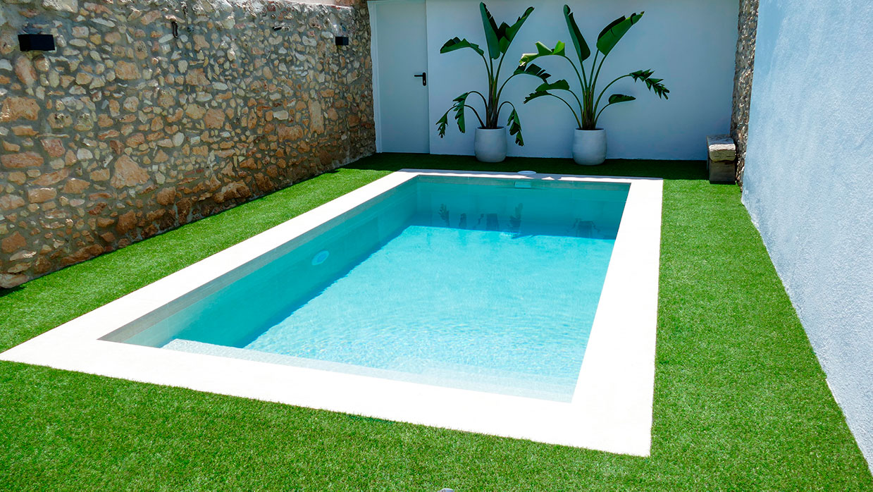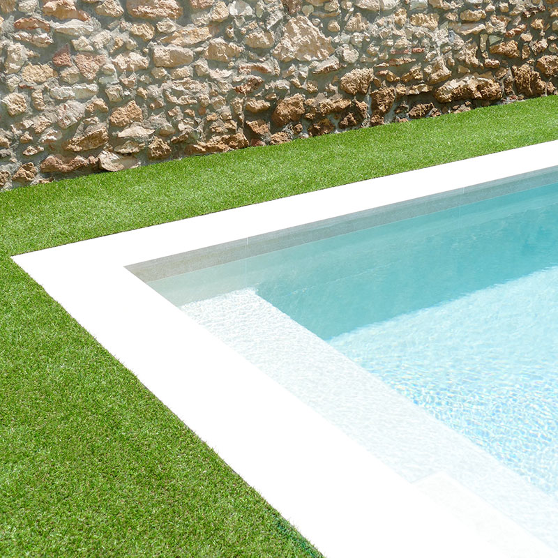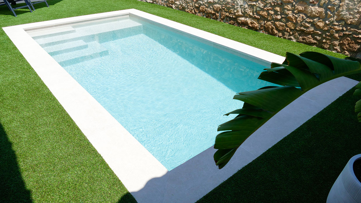 Featuring a built-in staircase and integrated bench, as well as interior and exterior lighting, this pool combines comfort, design, and practicality in a compact space. In addition, the porcelain grate and skimmer system optimize functionality and maintenance, achieving a perfect balance between beauty, technical performance, and durability.