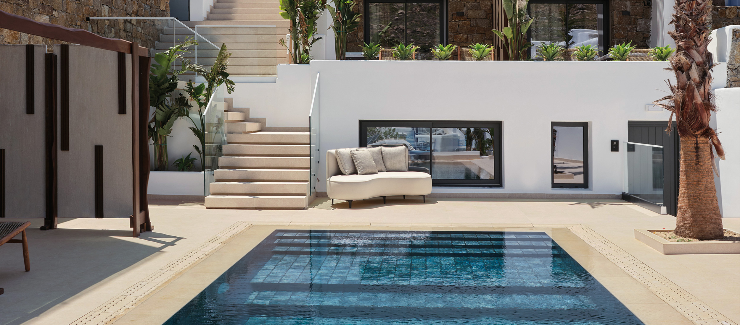 Nuestro gres porcelánico se adapta a cualquier estilo de piscina, priorizando la integración con el entorno y la continuidad estética del proyecto