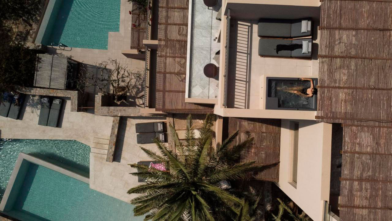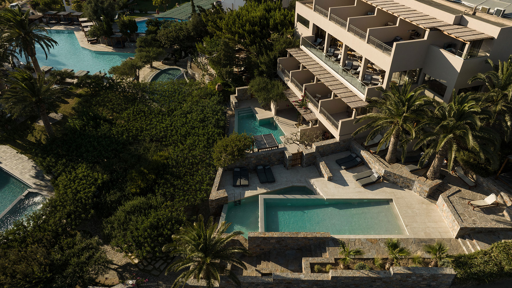 El precioso Hotel Paralos Irini Mare está situado en una colina con vistas panorámicas a la bahía de Agia Galini en Grecia. Cuenta con 2 piscinas y un gran número de terrazas compartidas y privadas, todo ello reformado con nuestro color Stromboli Cream en su formato cuadrado de 60×60 cm. Este gres porcelánico que imita a la piedra natural y tiene infinidad de detalles, encaja a la perfección con el estilo del lugar.