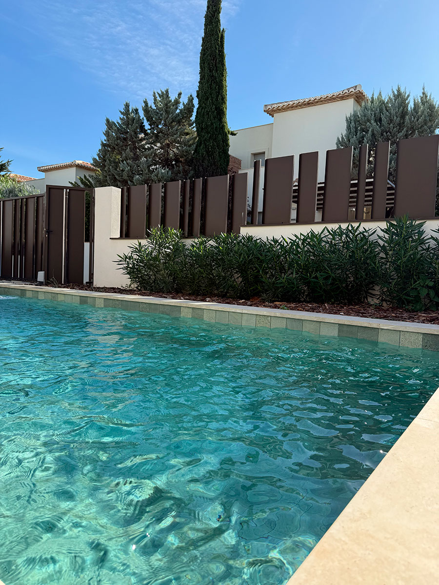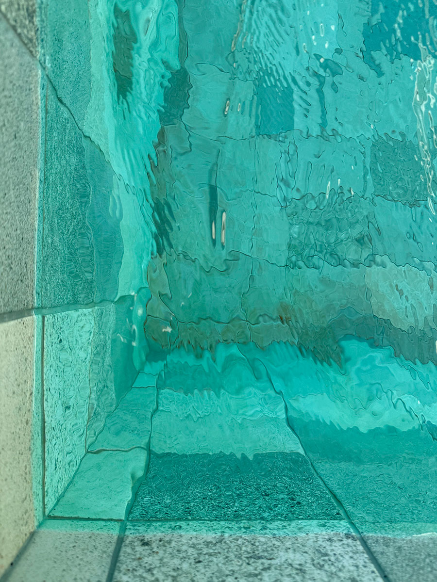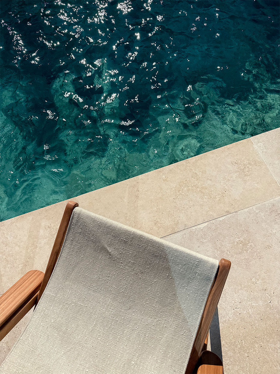 En el interior de la piscina y su coronación, la colección Bali Zatu transforma el agua en un espectáculo visual único. Su tonalidad cálida y natural, inspirada en las piedras de Bali, realza la luminosidad del agua y genera un efecto envolvente que invita al relax.