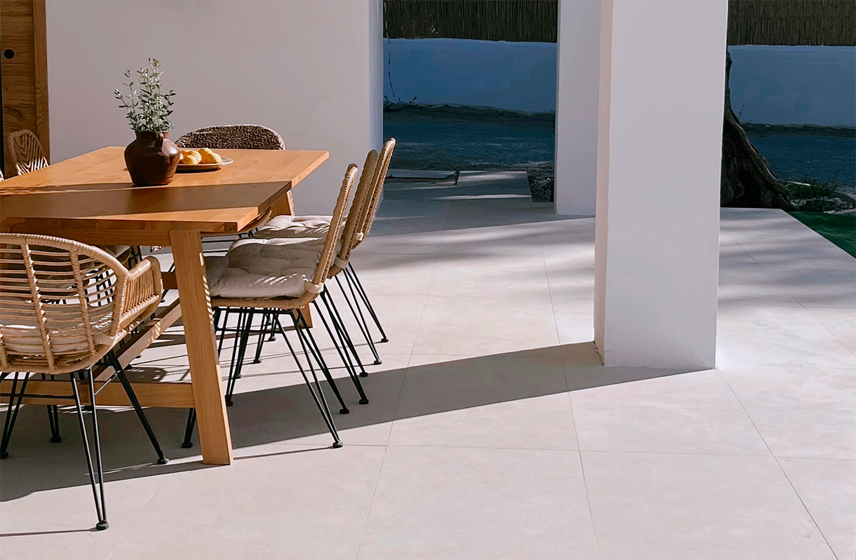 Esta vivienda unifamiliar es el ejemplo perfecto de cómo la cerámica puede transformar los espacios exteriores en lugares de confort, diseño y funcionalidad. Para este proyecto se ha utilizado nuestra colección Stromboli en color Light, un gres porcelánico en formato 60×120 cm que destaca por su estética suave y natural, inspirada en la piedra volcánica.