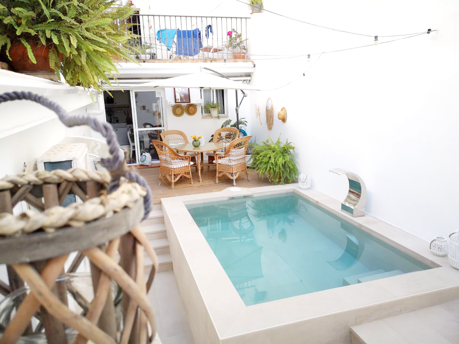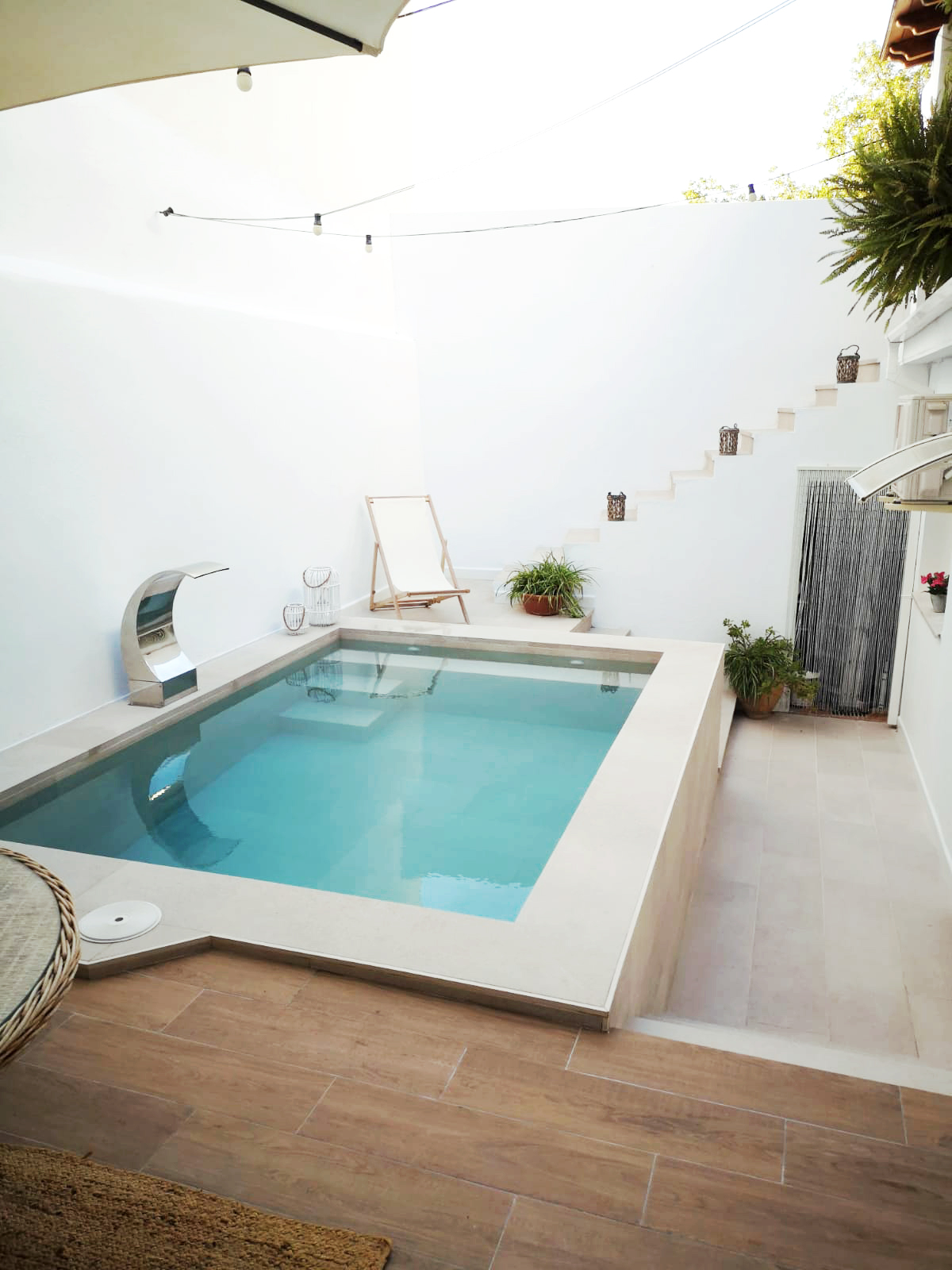 В этом небольшом дворике, где решили построить бассейн, был сделан идеальный выбор – цвет Stromboli Light для всей облицовки.